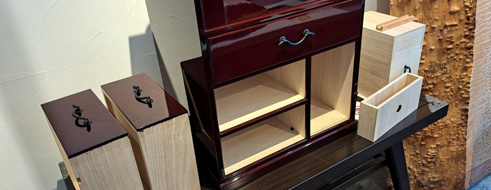 At the workshop of Watanabe Akiri, the team explored Sashimono, a furniture construction technique that relies entirely on joinery rather than glue or fasteners. While dovetails are often showcased in Western furniture making as a mark of the maker, in the Sashimono tradition, they are often hidden as "secret" mitre dovetail joints.